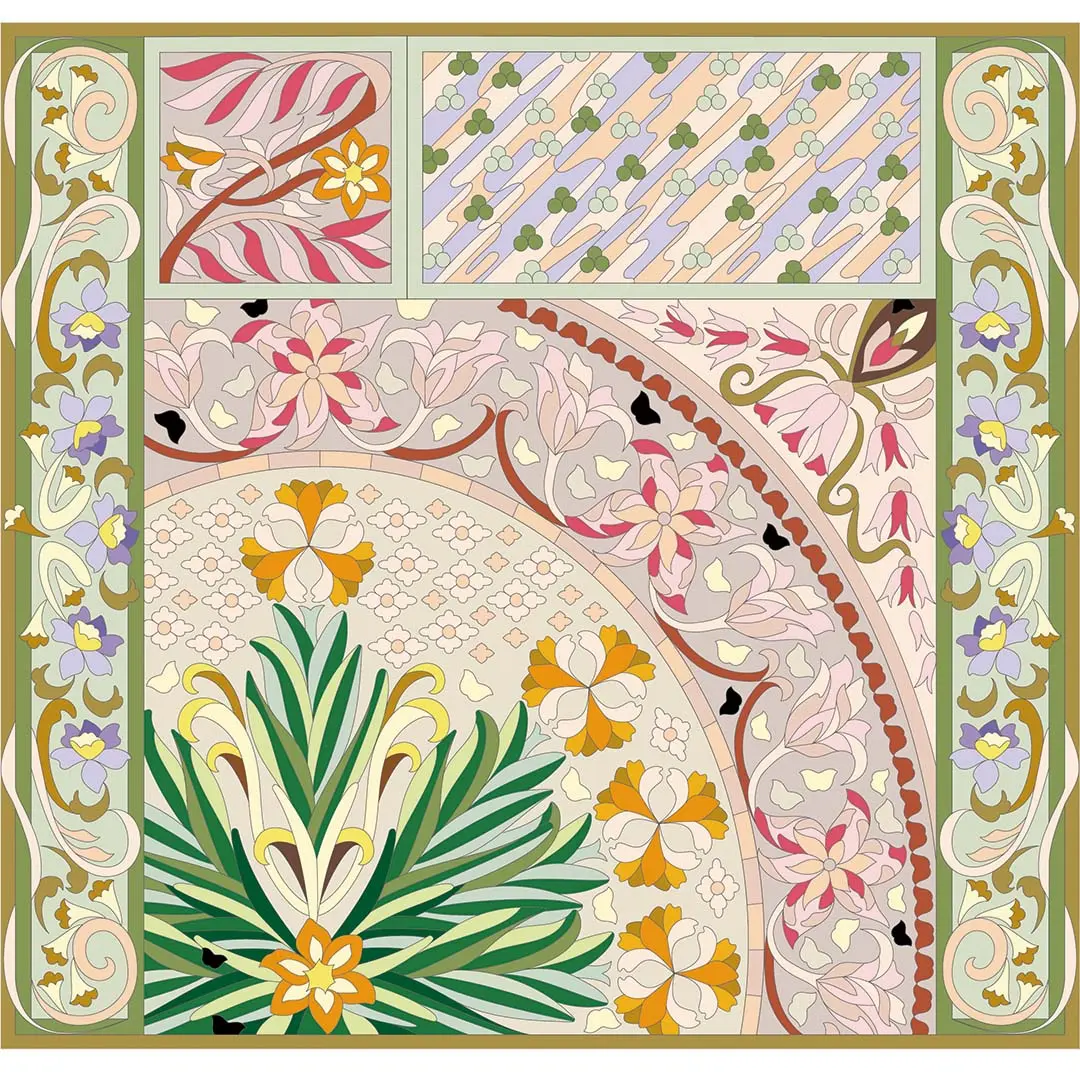 クラシカルで装飾的なアール・ヌーヴォー様式の抄本を思わせる大人向けの塗り絵です。